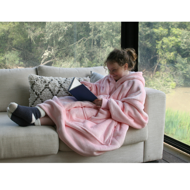 Luxuriously soft oversized hoodie and wearable blanket, with a specially designed kangaroo pouch for nervous pets, snuggling up with your fur-baby, or with your loved one's, together on the couch. Perfect for binge TV!
